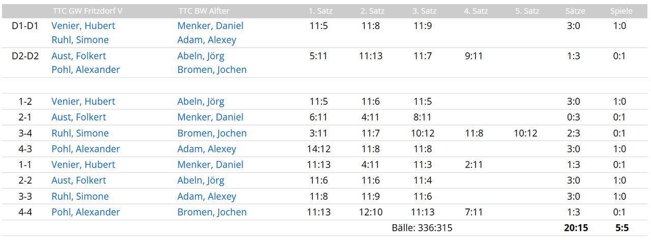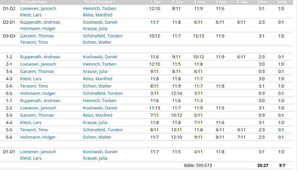 Mit einer Top-Leistung schlugen sie den Tabellennachbarn mit 7:3 u. sind damit wieder auf dem 2. Platz