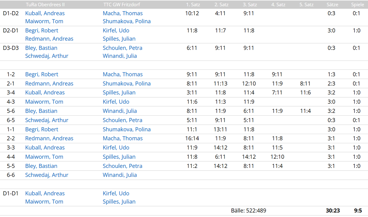Sa. 21.02.2026 18:30 TuRa Oberdrees II vs. TTC GW Fritzdorf 9:5