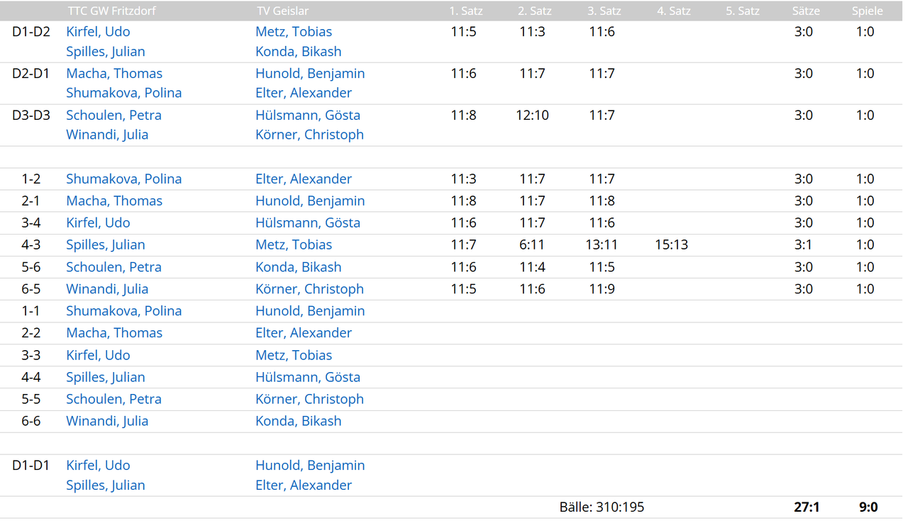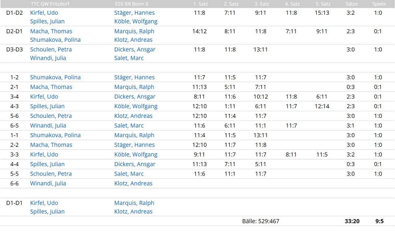 TTC Bonn-Duisdorf V vs. TTC GW Fritzdorf VII 6:4