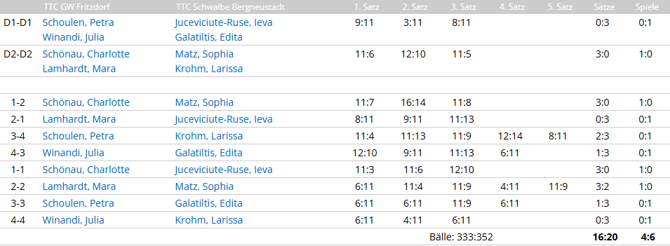 Fast, aber nur fast, hätte es sogar ein Sieg werden können, denn die Nummer 1 der Gastgeberinnen (TTR 1992)