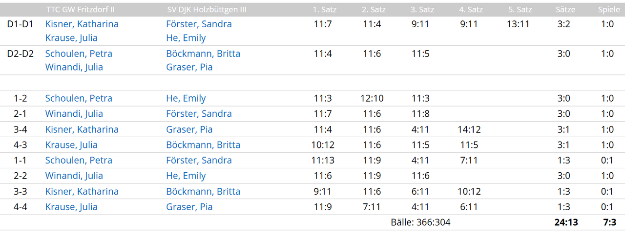 Die Gegenpunkte holten die Doppel Macha/Shumakova u. Schoulen/Winandi sowie zweimal Udo Kirfel.