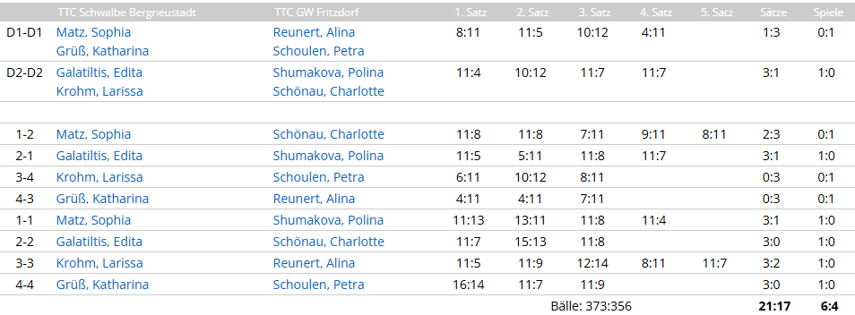 Do. TTC GW Fritzdorf VI : TTC GW Fritzdorf VII 8:2, das war zu erwarten