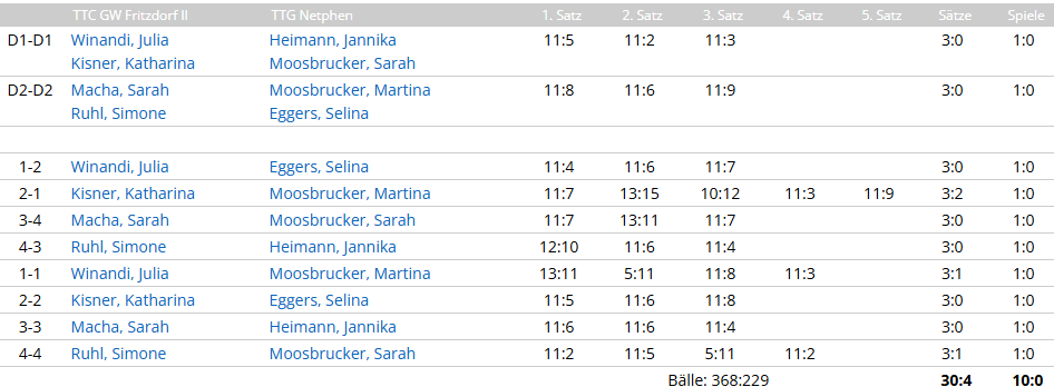 Sa. TSV Blankenheim vs. TTC GW Fritzdorf III (3.Damen) 1:9 Ungefährdeter Erfolg im Auswärtsspiel