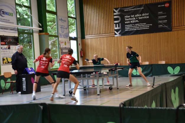 Am Wochenende standen für die 1. Damenmannschaft die ersten beiden Spiele an. Nachdem das Spiel am Samstag gegen die Gäste aus Langen deutlich mit 0:6 verloren ging, konnten die Mädels am Sonntag gegen Großburgwedel zumindest ein Unentschieden erspielen. Dort haben direkt beide Doppelkombinationen Schönau, H./ Krießbach und Hoffmann/ Schönau Ch. gepunktet. Und auch danach sah es zunächst nach einem Siegeskurs aus, denn sowohl Hannah Schönau als auch Hannah Krießbach brachten ihre ersten Einzel nach Hause. Nach dem 4:2 wurde es aber nochmal spannend. Die Gäste aus Großburgwedel gewannen die nächsten drei Spiele relativ deutlich. Das letzte Spiel ging über die volle Länge, mit dem besseren Ende für Fritzdorf. Hannah Krießbach konnte Sofia Stafanska 12:10 im fünften Satz für sich entscheiden. Damit sicherte sie für Fritzdorf den ersten Punkt.